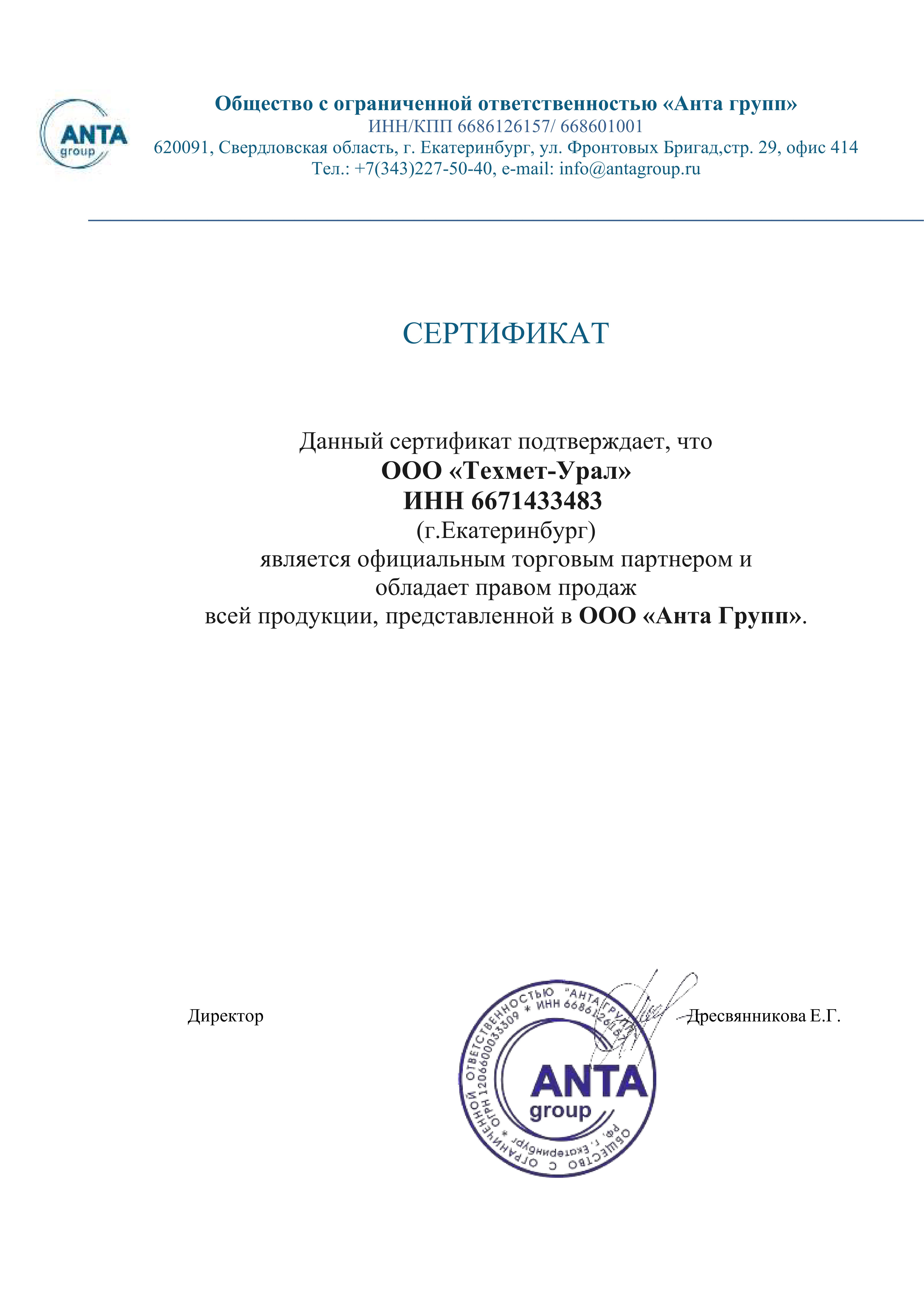 Сертификат торгового партнёра "Анта Групп" 1.1 мб