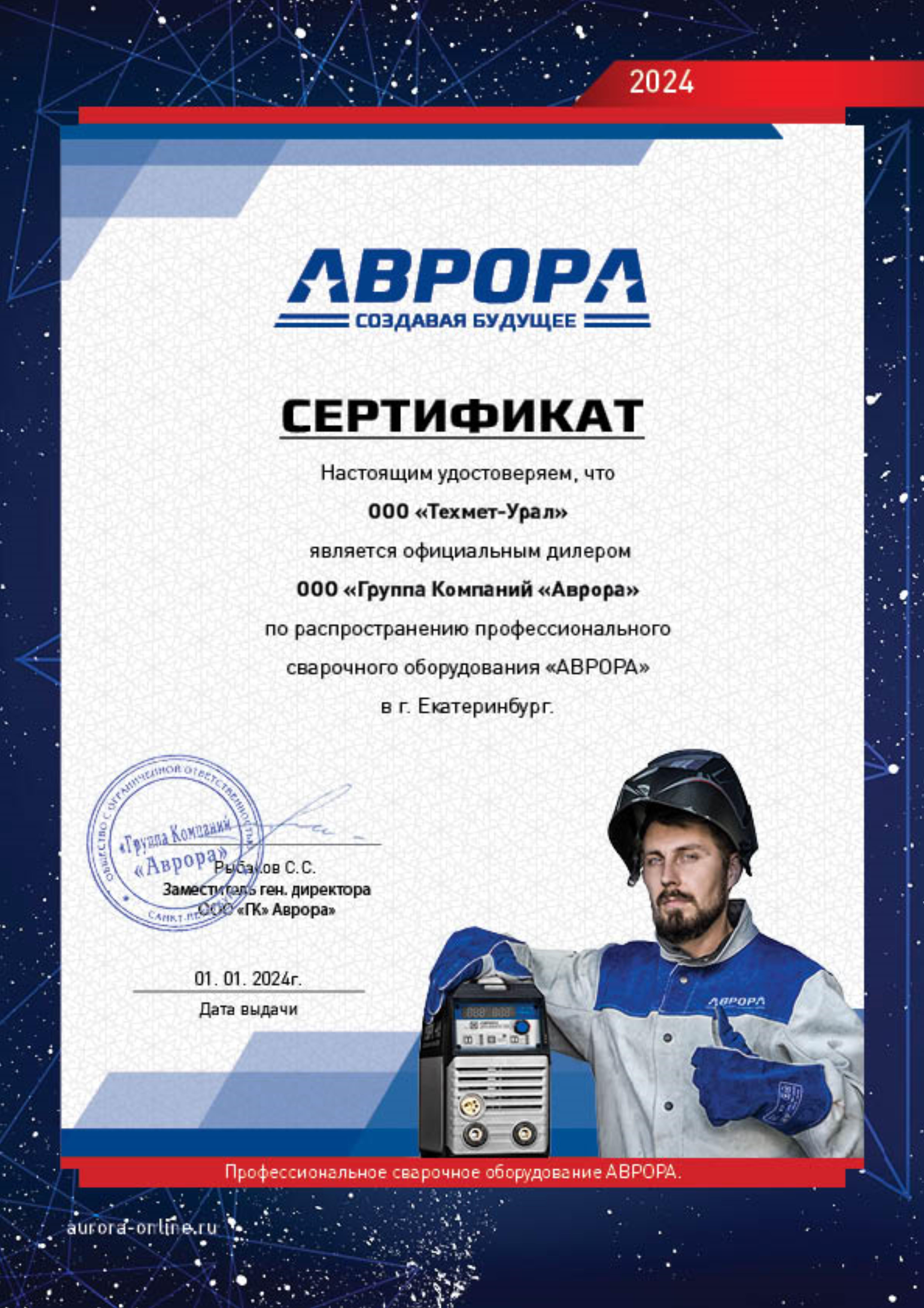 Сертификат дилера торговой марки "Аврора" 1.7 мб